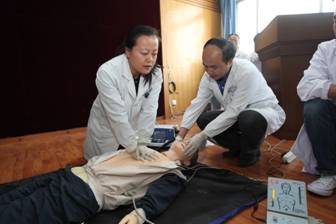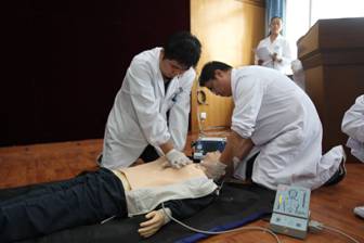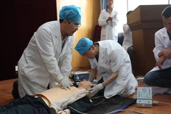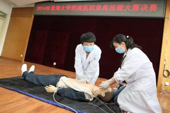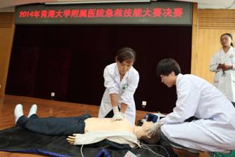 为庆祝青海大学附属医院建院五十五周年和第四届“医师协会医师节”的到来,由院工会、医务部、院急救工作委员会联合举办的临床、医技科室急救知识技能大赛于2014年6月19日在综合大楼会议室胜利落下帷幕。本次大赛分为笔试和操作二部分,内容涉及心肺复苏及除颤仪使用,大赛参赛范围为全院临床、医技科室的医师、技师。